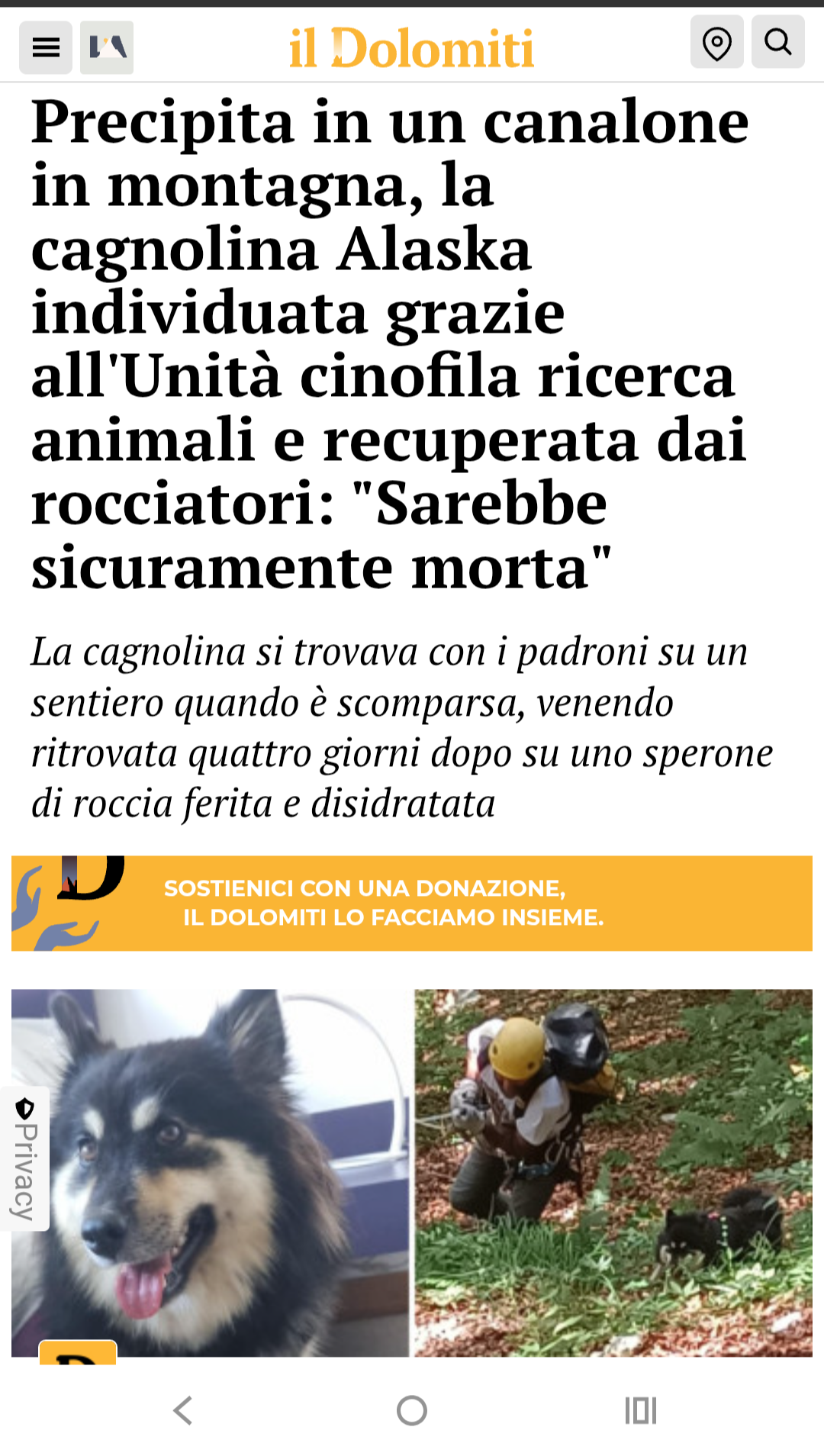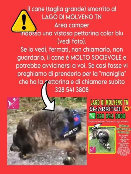 È mentre siamo per la seconda, ma non ultima volta,a Molveno,in ricerca di Orso,cane scappato dal parcheggio Camper ( ora sicuri di dove sosta e che presto tornerà a casa),che ci chiedono aiuto a Roncegno ( borgo Valsugana) x Marcolino,maltese di 11 anni,anche lui allontanatosi dalla casa vacanze,affetto da epilessia ed altri problemi..Rientrati alle 1 di notte dalla precedente ricerca e nonostante il gran temporale della notte,la sveglia suona alle 4 di mattina...e si parte. Eva trova le tracce in un ruscello sottostante la baita dove alloggia ed inizia a guardarlo,giù,verso valle.Con i proprietari iniziamo a costeggiarlo,finché Eva,ne segnala l uscita. Una via d uscita che,x i proprietari, sembra impossibile sia stata presa da un cane già tanto provato.... Mi inoltro nel bosco e continuo a scendere, finché Eva riesce,poi ci si rincontra coi padroni. Chiedo loro di non perdere le speranze e li invito a volantinare il paese sottostante,direzione indicata da Eva.Ci di lascia,con un po' di sconforto x le precarie condizioni di Marcolino,col timore che ,seppur Eva ne avesse segnalato l uscita dall' acqua,possa non avercela ugualmente fatta( il tratto percorso nel ruscello,non era affatto corto).... Nemmeno il tempo di stampare i volantini ed incrociare le dita ,che arriva la chiamata da un autista d autobus,che,proprio sulla strada a valle,si et visto venire incontro ,il Super-Vecchio-Epilettico-Indisrtuttibile Marcolino!!!!! Ora è felice tra le braccia di mamma e papà 💕 Grazie x la fiducia Grazie Eva Buona vita cucciolo